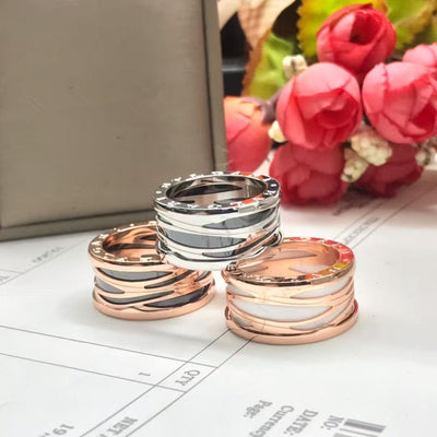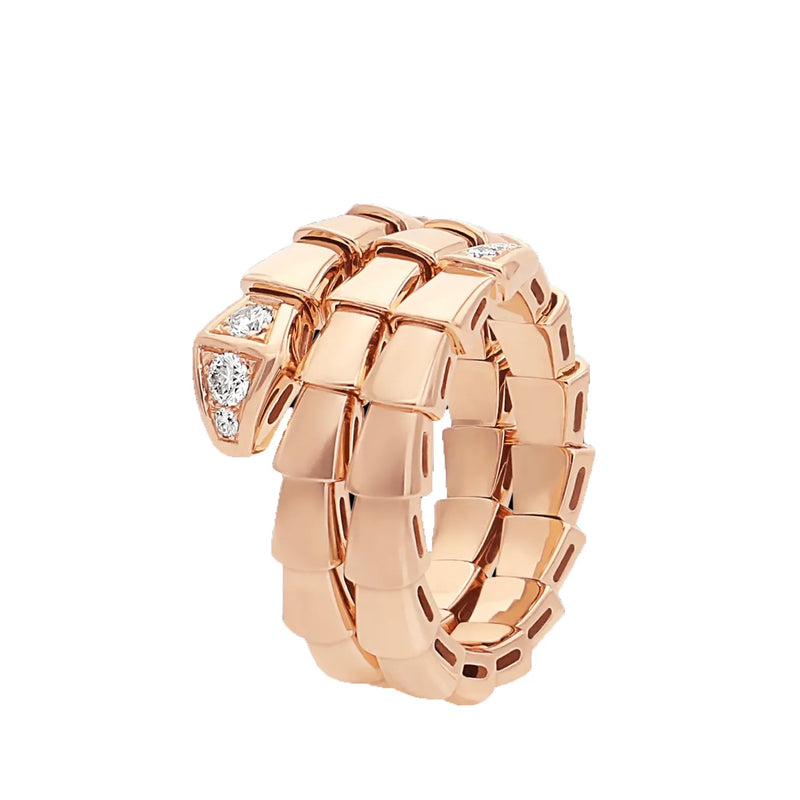 Aura Split: A sculptural study in light and void. Bold rose or yellow gold forms are defined by a striking horizontal divide. Set with brilliant-cut diamonds for an undeniable glow.