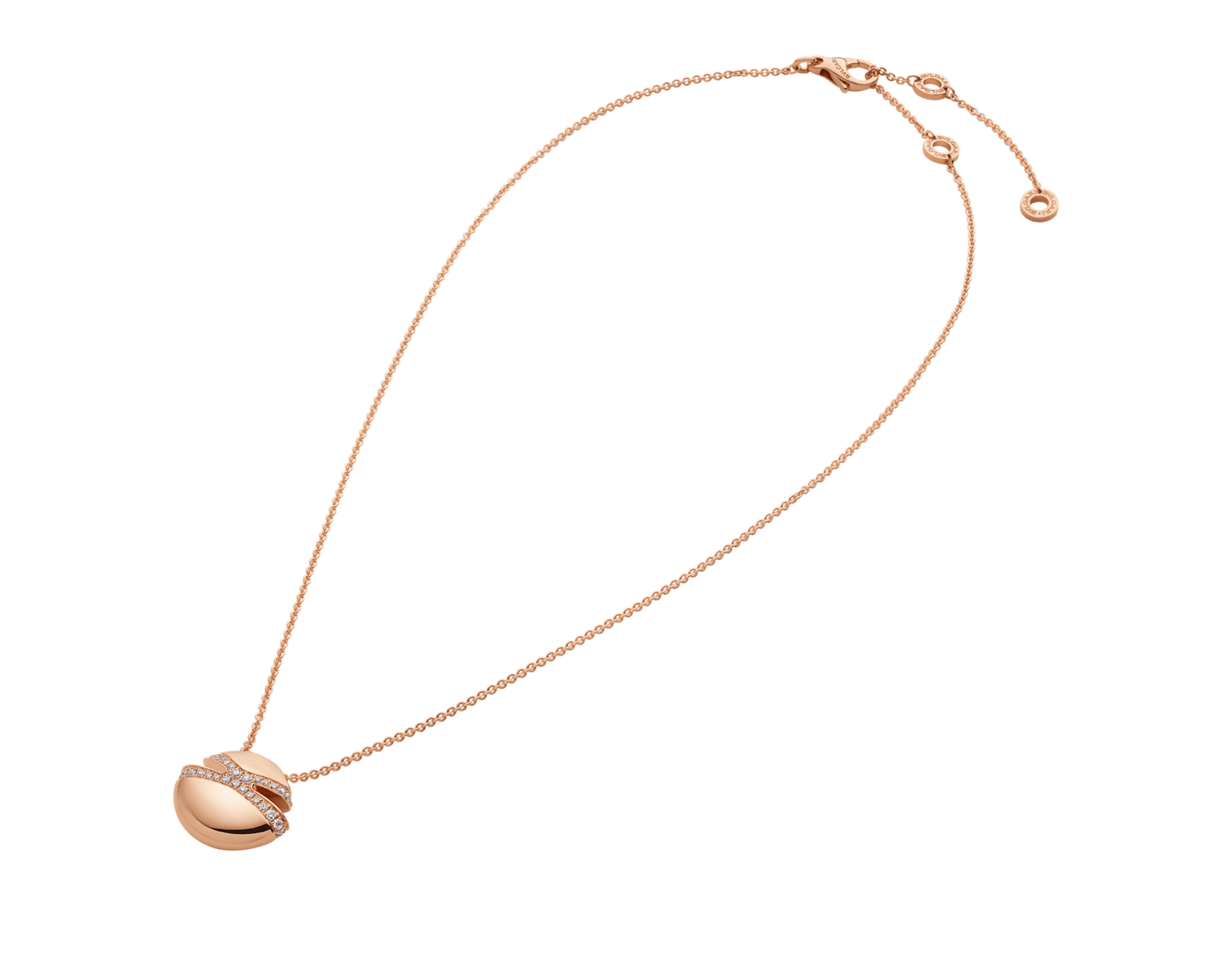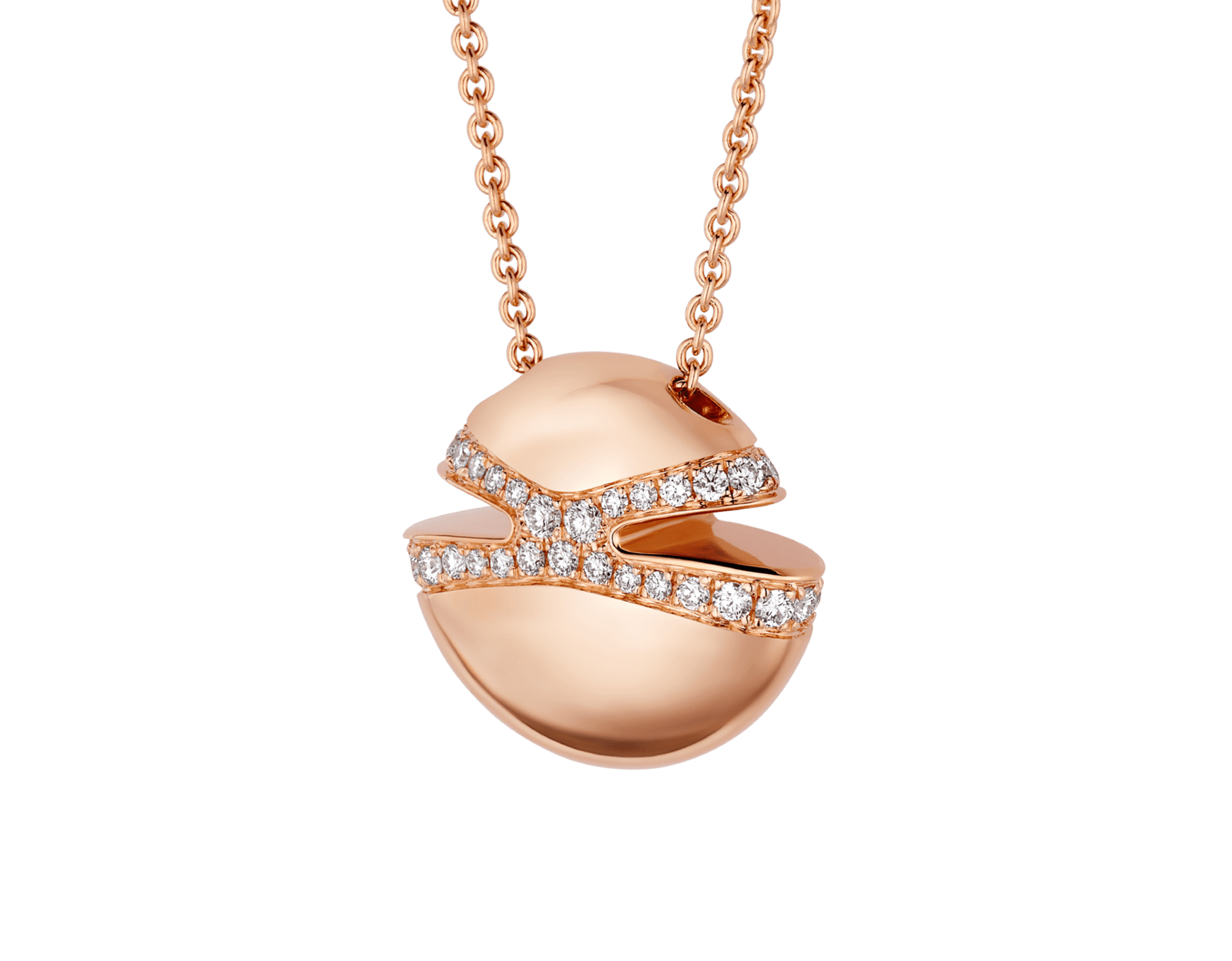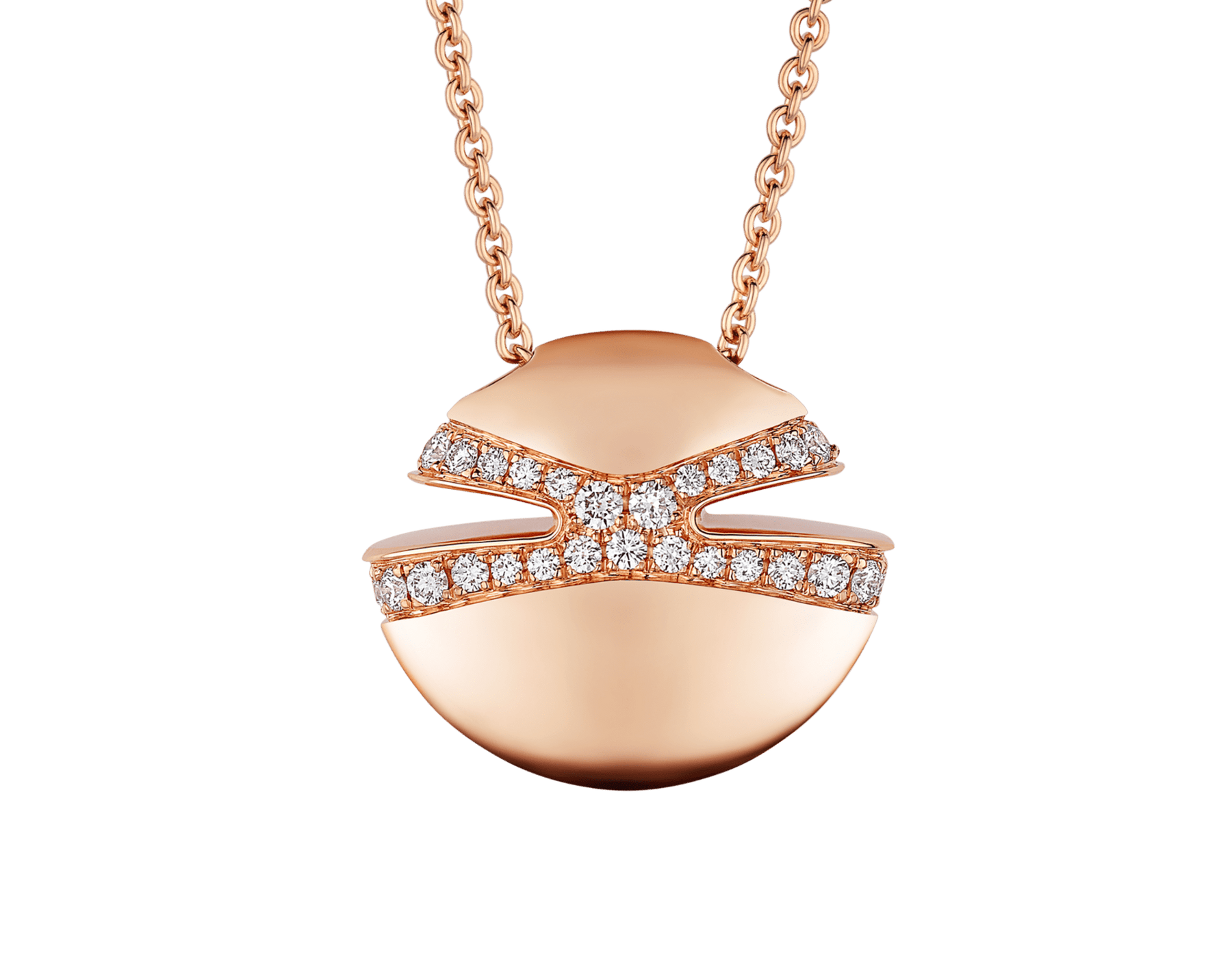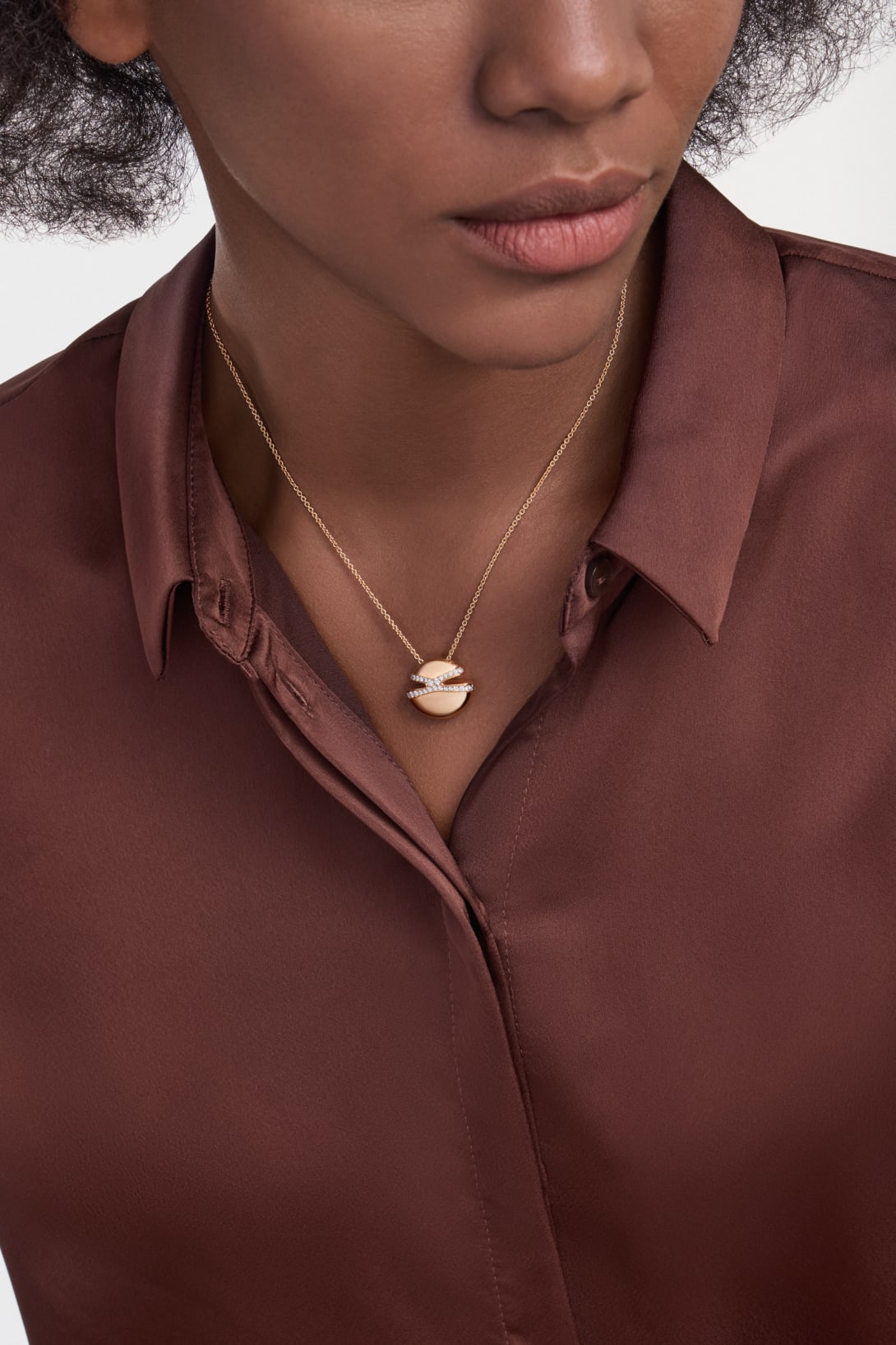 Regular price Dhs. 525.00Born from the symmetrical union of two cabochons, creating a perfect harmony of volumes and shapes, the Bob Cabochon necklace in rose gold is a symbol of love and good fortune conveying a message of eternal love and happiness. Drawing inspiration from the smooth cabochon cut – an aesthetic Bob signature since the 1950s that elevates the natural charm of gemstones – its design enhances the organic purity of gold, while the refined diamond pavé adds a touch of preciousness to the creation.