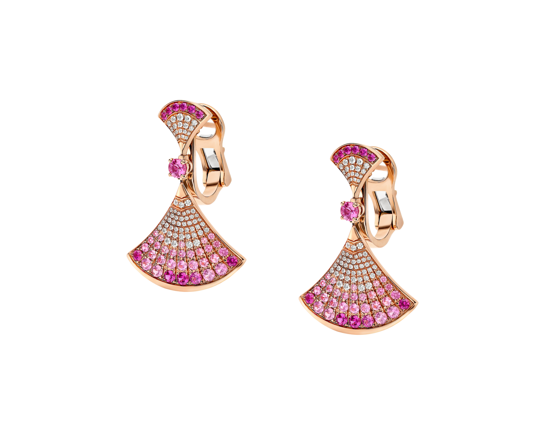 Regular price Dhs. 259.00Bob Mrs.Divas rose gold earrings set with round brilliant-cut pink sapphires and rubies, and pavé diamonds