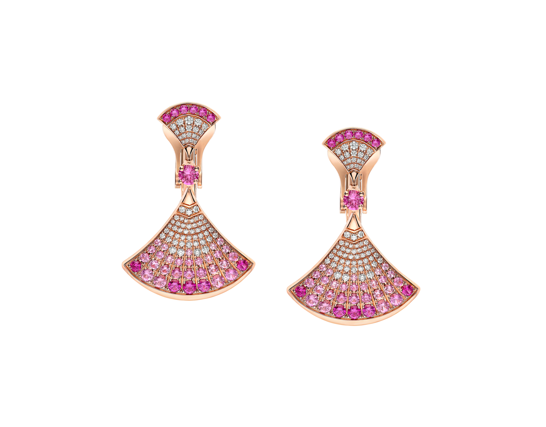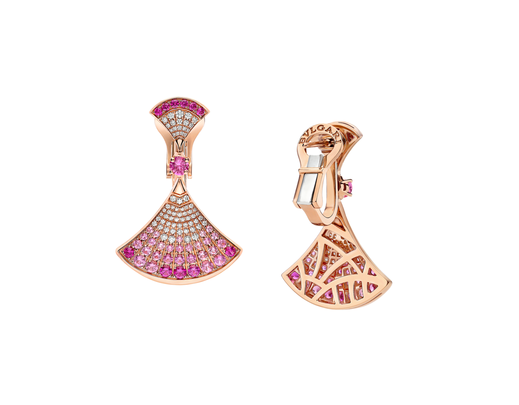 Bob Mrs. Divas Ophelia Rose Gold Earrings Lab-grown Moissanite Pink sapphires
