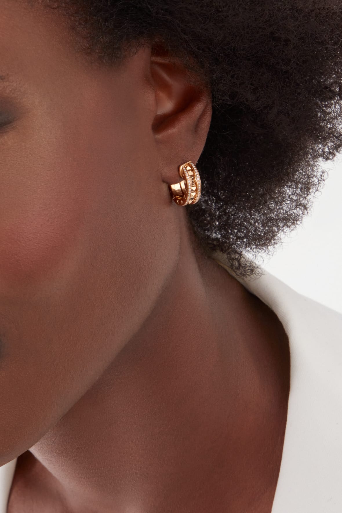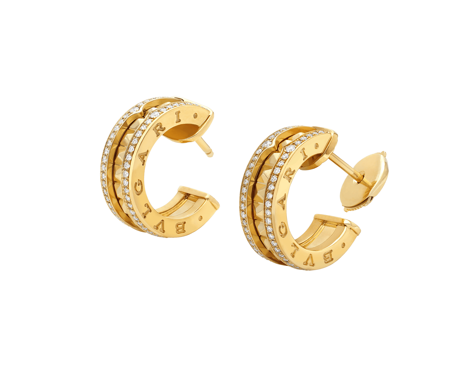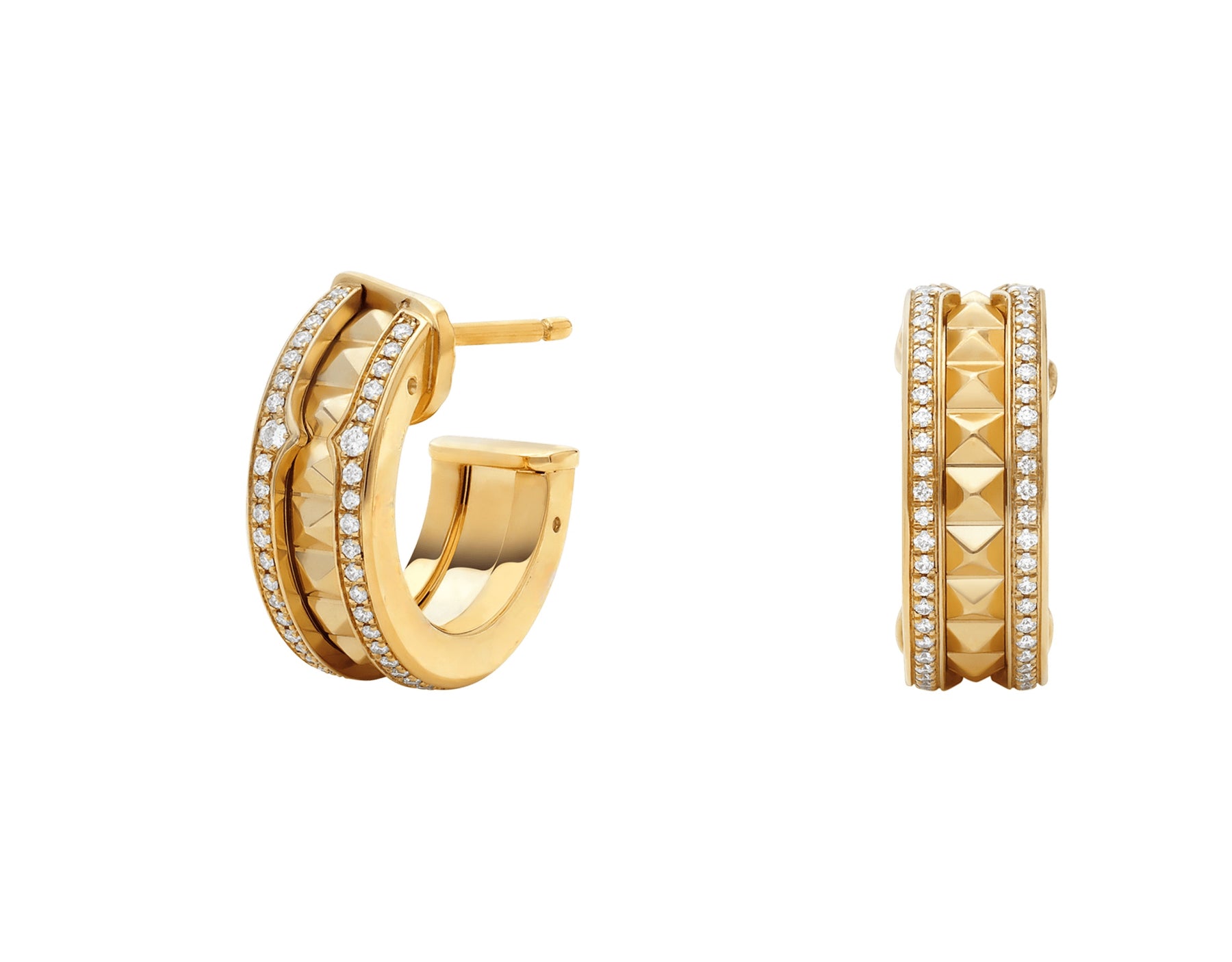 Bob Rollers Marlo Yellow Gold Earrings Lab-grown Moissanite, Bob Rollers yellow gold earrings with studded spiral and pavé diamonds on the edges .