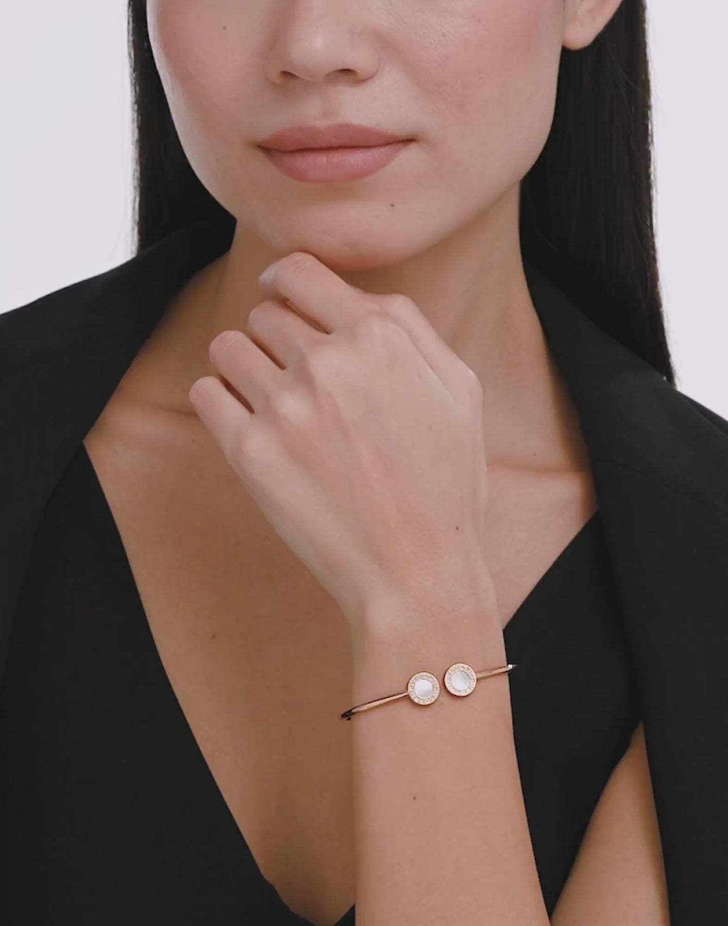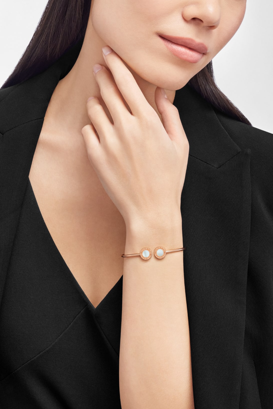 Inspired by the Maison's Roman roots and created as a timeless fusion of culture and modernity, the Bvlgari Bvlgari bracelet in rose gold is a statement of timeless originality. Evoking the curved inscriptions on ancient Roman coins, the distinctive circular design element is set with mother-of-pearl, offering contemporary and versatile wear.