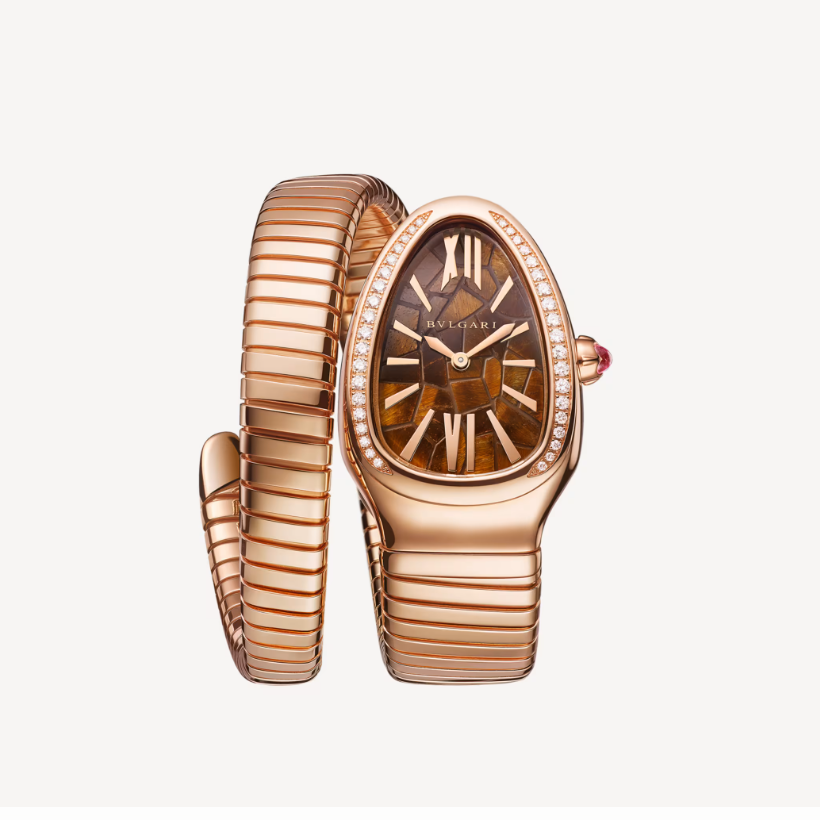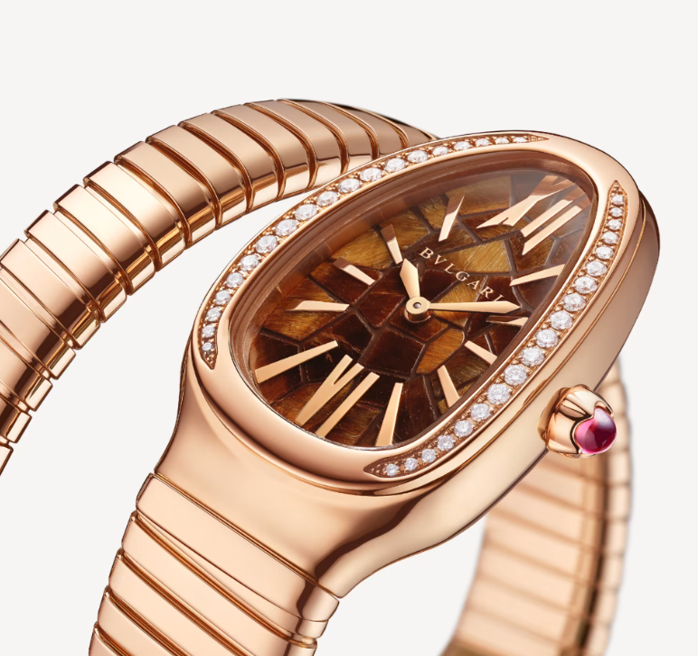 Bob Snake Chrono Rose Gold Watch ith Pavé Diamonds On The Bezel And Tiger's Eye Dial