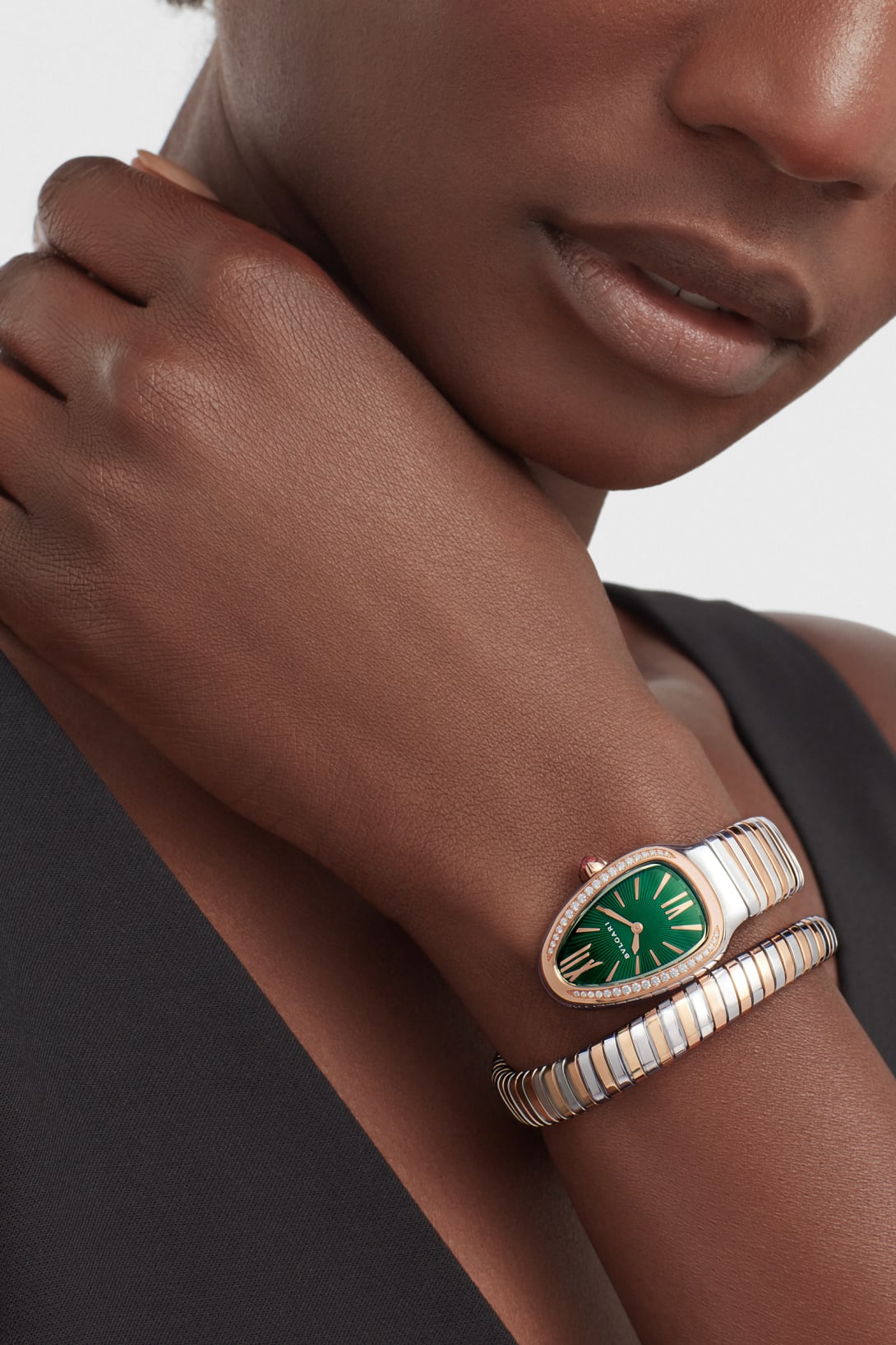 Bob Snake Chrono Rose Gold Watch Steel With Diamond-set Bezel And Green Lacquered soleil dial