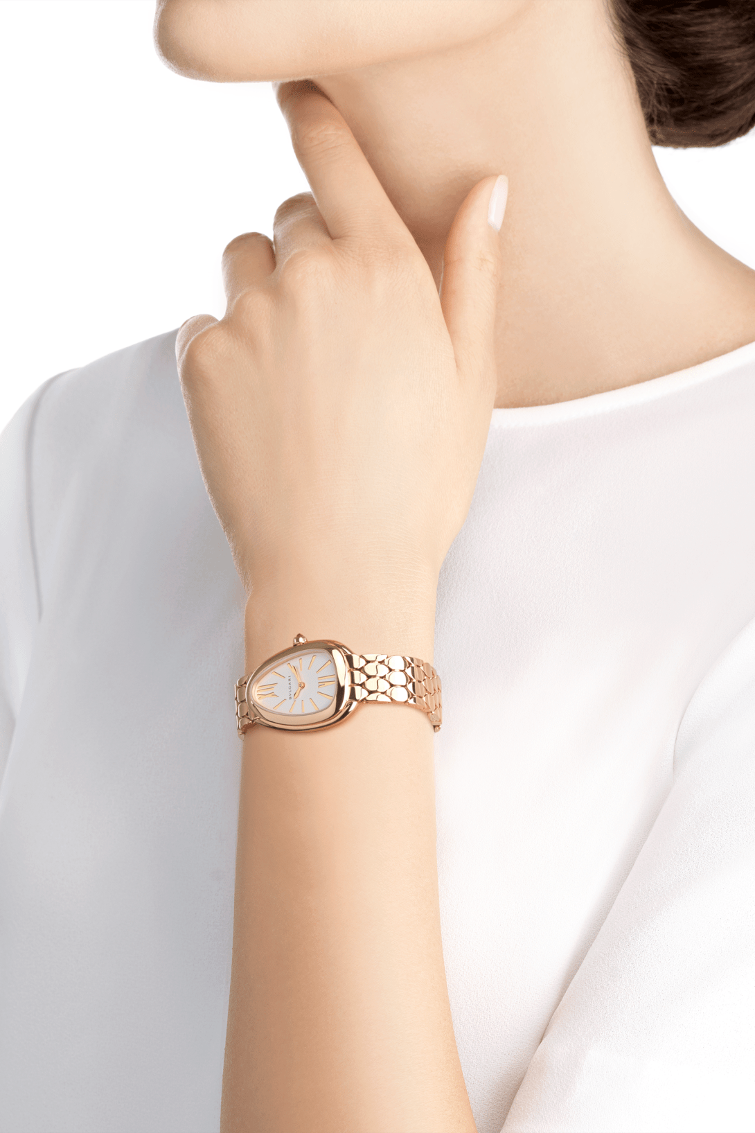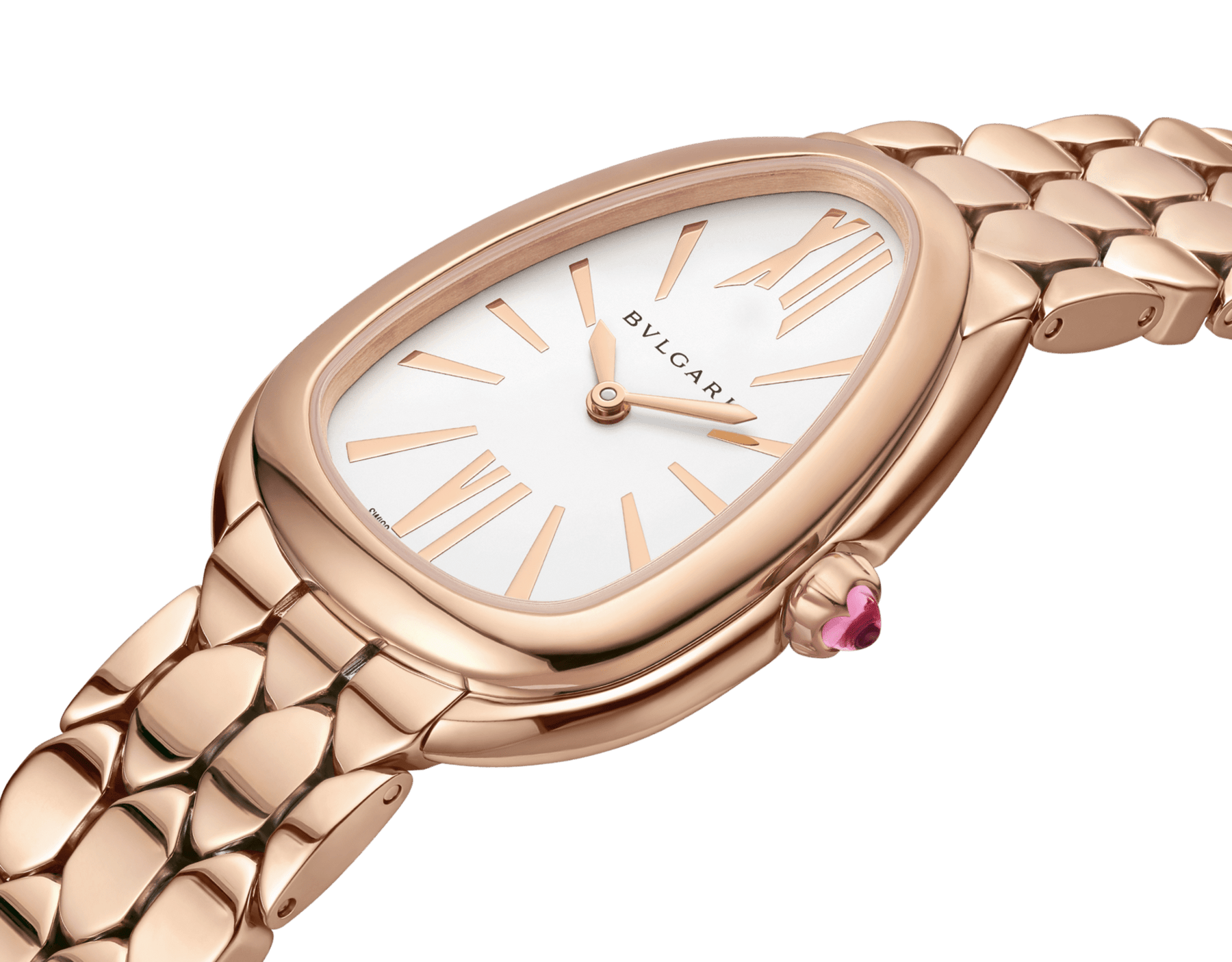 Bob Snake Spiga Rose Gold Watch Bezel And Crown Set With 1 Cab Cut Pink Rubellite