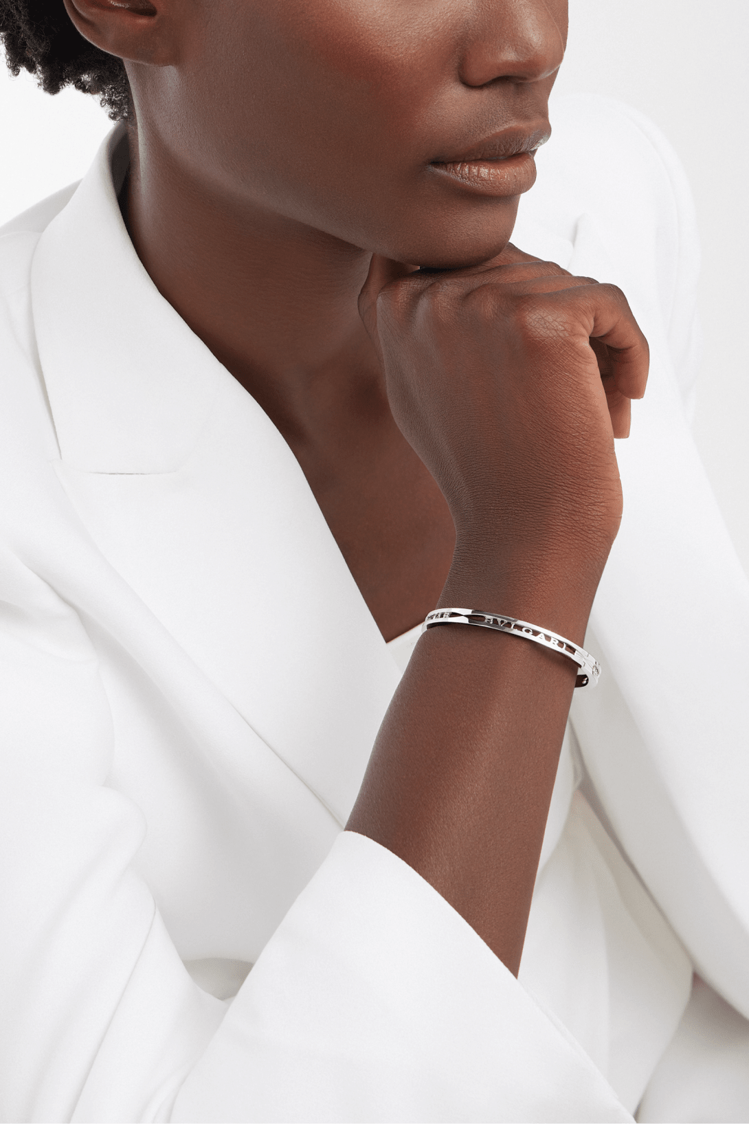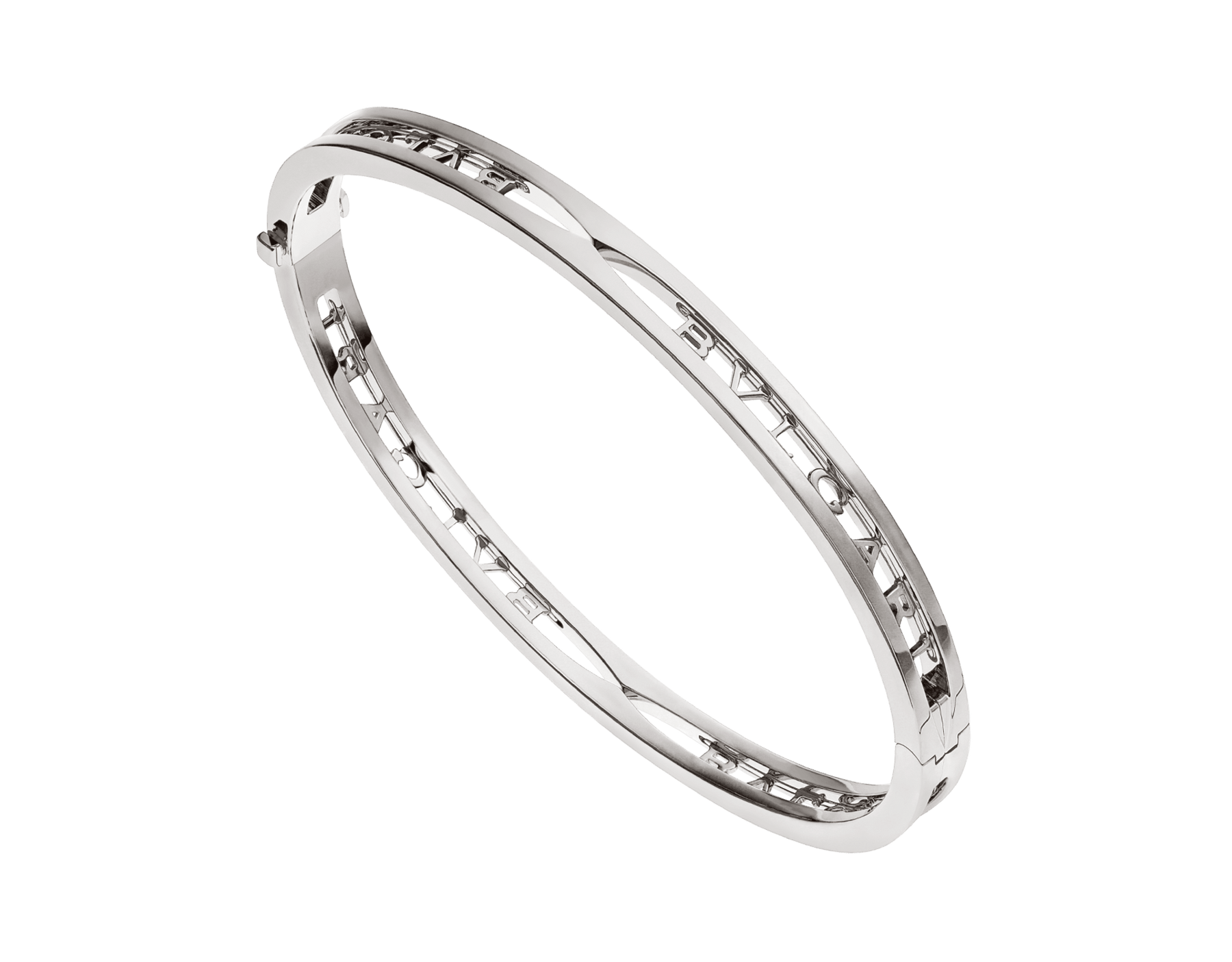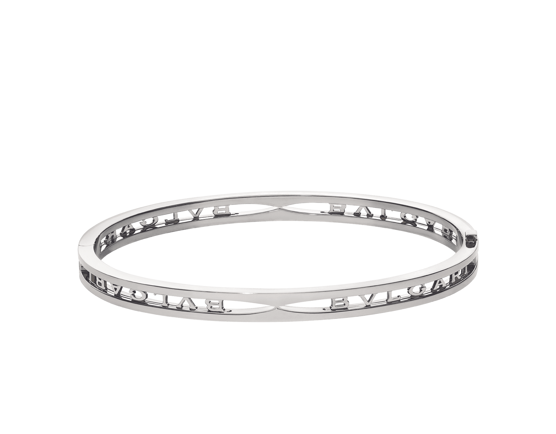 Drawing its inspiration from the most renowned amphitheatre of the world, the Colosseum, B.zero1 is a groundbreaking statement of Bvlgari’s creative vision and a true icon of Italian design. Challenging the very essence of jewellery aesthetics, its distinctive spiral is a metaphor for the harmony of past, present and future - reflected in the magnificence of the eternal city - and the emblem of the pioneering spirit of the collection. Here the spiral is reimagined in an unforeseen way, featuring the bold Bvlgari logo. B.zero1 white gold bangle bracelet.