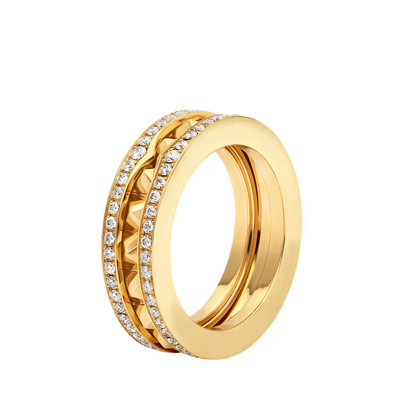Lotteds Bob Rollers Gear Ring Yellow Gold Moissanite Pavé Stud 1-Band