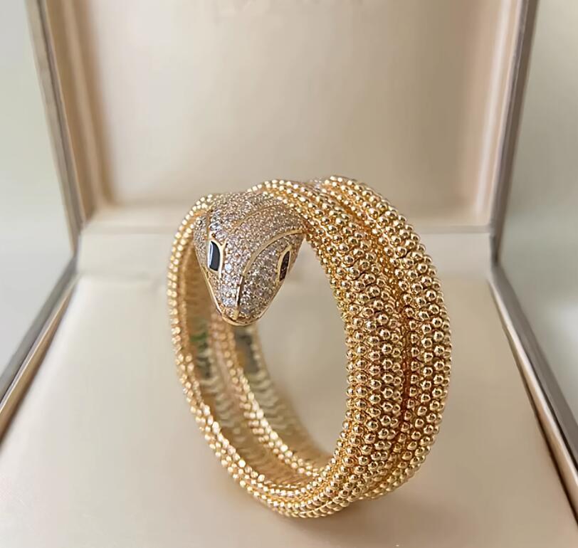 • Snake-inspired, it symbolizes mystery and wisdom, offering the wearer protection and peace.