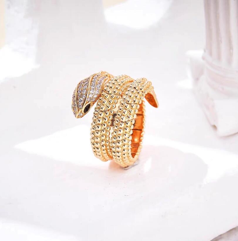 Lotteds Bob Snake Viper Ring, Champagne Gold Pavé Coiling